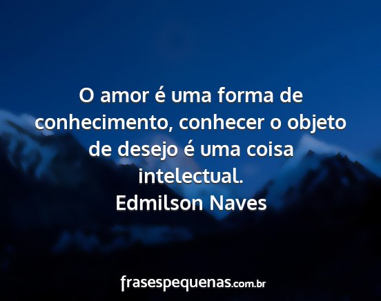 O amor é uma forma de conhecimento, conhecer o objeto de desejo é uma coisa intelectual.Edmilson Naves