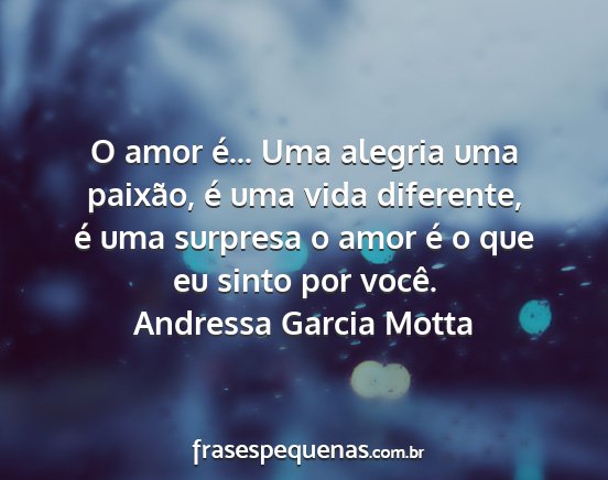 O amor é... Uma alegria uma paixão, é uma vida diferente, é uma surpresa o amor é o que eu sinto por você.Andressa Garcia Motta