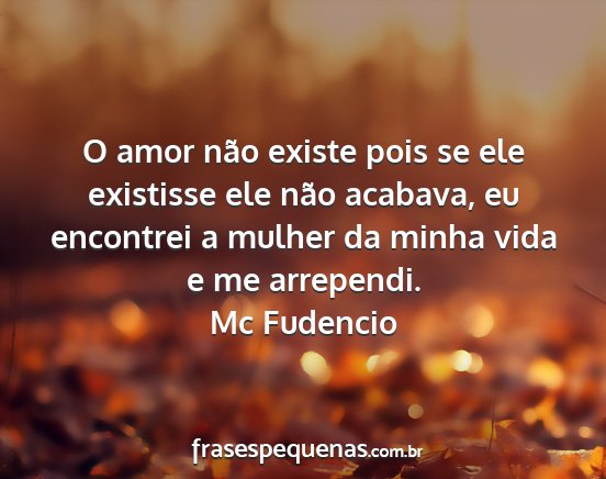 O amor não existe pois se ele existisse ele não acabava, eu encontrei a mulher da minha vida e me arrependi.Mc Fudencio