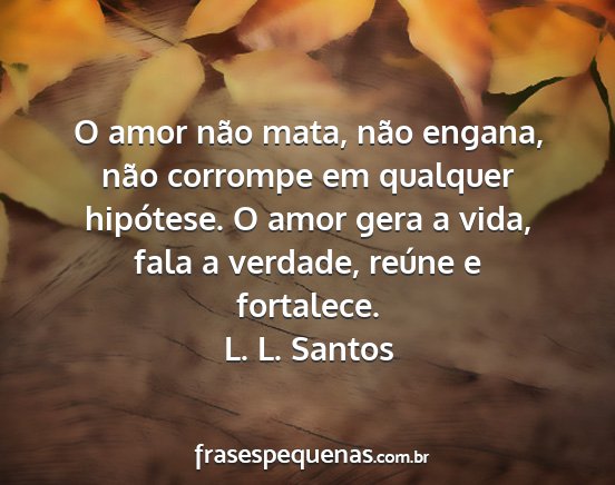 O amor não mata, não engana, não corrompe em qualquer hipótese. O amor gera a vida, fala a verdade, reúne e fortalece.L. L. Santos