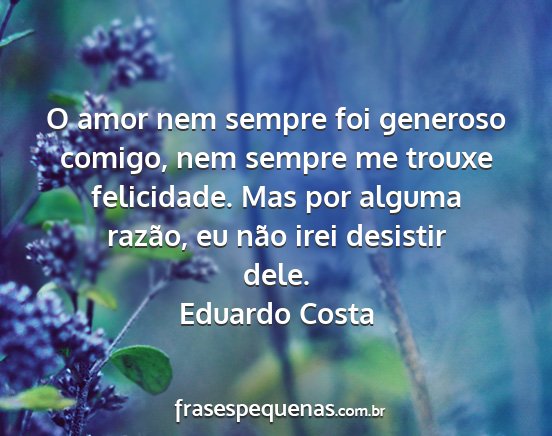 O amor nem sempre foi generoso comigo, nem sempre me trouxe felicidade. Mas por alguma razão, eu não irei desistir dele.Eduardo Costa