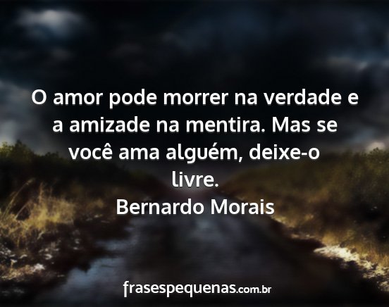 O amor pode morrer na verdade e a amizade na mentira. Mas se você ama alguém, deixe-o livre.Bernardo Morais