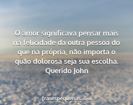 O amor significava pensar mais na felicidade da outra pessoa do que na própria, não importa o quão dolorosa seja sua escolha.Querido John