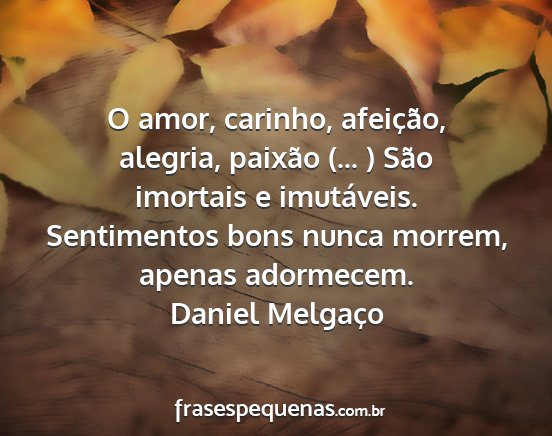 O amor, carinho, afeição, alegria, paixão (... ) São imortais e imutáveis. Sentimentos bons nunca morrem, apenas adormecem.Daniel Melgaço