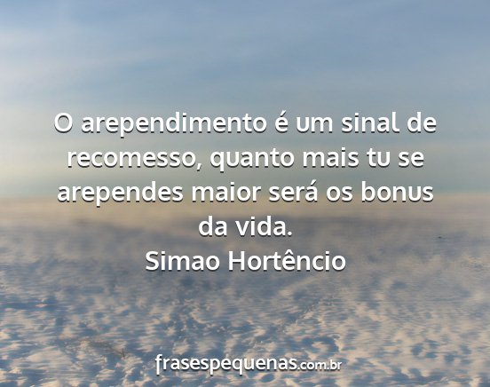 O arependimento é um sinal de recomesso, quanto mais tu se arependes maior será os bonus da vida.Simao Hortêncio