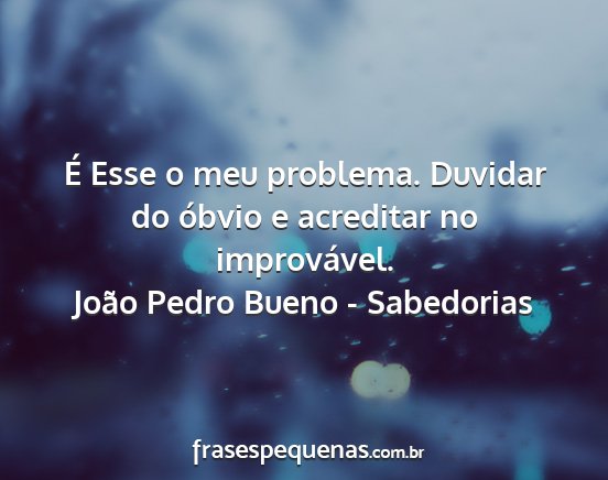 É Esse o meu problema. Duvidar do óbvio e acreditar no improvável.