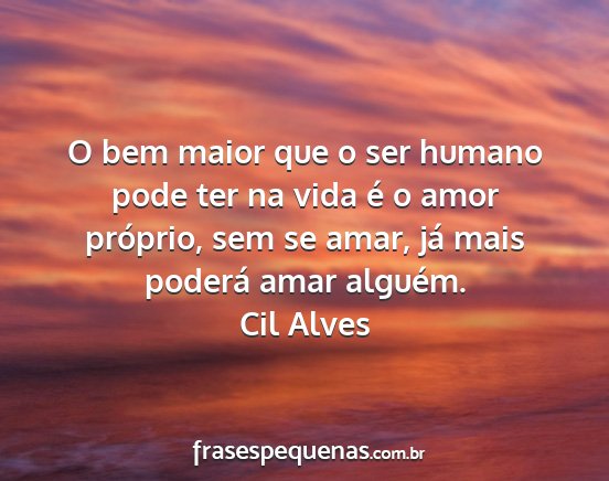 O bem maior que o ser humano pode ter na vida é o amor próprio, sem se amar, já mais poderá amar alguém.Cil Alves