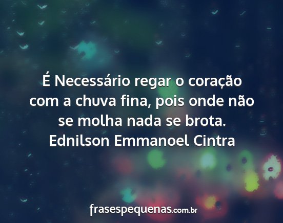 É Necessário regar o coração com a chuva fina, pois onde não se molha nada se brota.Ednilson Emmanoel Cintra