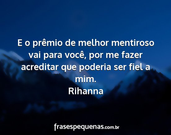 E o prêmio de melhor mentiroso vai para você, por me fazer acreditar que poderia ser fiel a mim.Rihanna
