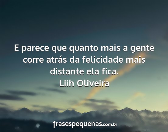 E parece que quanto mais a gente corre atrás da felicidade mais distante ela fica.