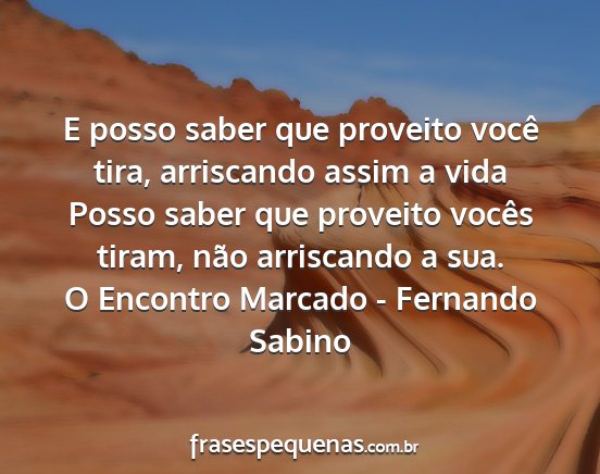 Posso saber que proveito vocês tiram, não arriscando a sua.O Encontro Marcado - Fernando Sabino