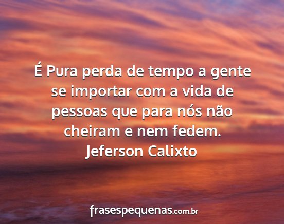 É Pura perda de tempo a gente se importar com a vida de pessoas que para nós não cheiram e nem fedem.Jeferson Calixto