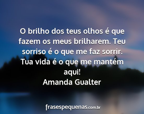 O brilho dos teus olhos é que fazem os meus brilharem. Teu sorriso é o que me faz sorrir. Tua vida é o que me mantém aqui!Amanda Gualter
