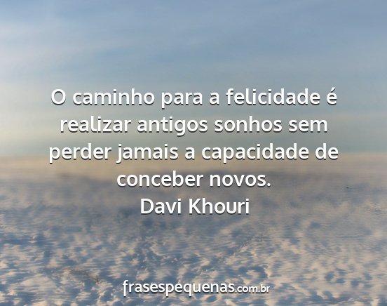 O caminho para a felicidade é realizar antigos sonhos sem perder jamais a capacidade de conceber novos.Davi Khouri