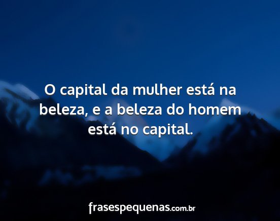 O capital da mulher está na beleza, e a beleza do homem está no capital.