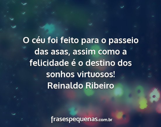 O céu foi feito para o passeio das asas, assim como a felicidade é o destino dos sonhos virtuosos!Reinaldo Ribeiro