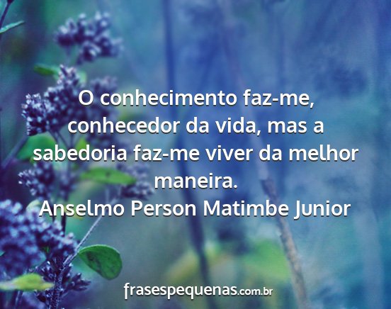 O conhecimento faz-me, conhecedor da vida, mas a sabedoria faz-me viver da melhor maneira.Anselmo Person Matimbe Junior