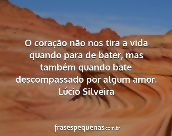O coração não nos tira a vida quando para de bater, mas também quando bate descompassado por algum amor.Lúcio Silveira
