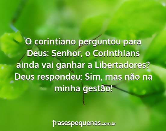 O corintiano perguntou para Deus: Senhor, o Corinthians ainda vai ganhar a Libertadores? Deus respondeu: Sim, mas não na minha gestão!