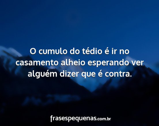 O cumulo do tédio é ir no casamento alheio esperando ver alguém dizer que é contra.