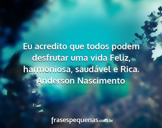 Eu acredito que todos podem desfrutar uma vida Feliz, harmoniosa, saudável e Rica.Anderson Nascimento