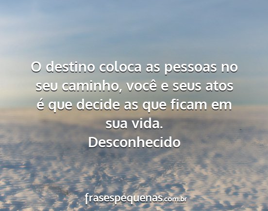 O destino coloca as pessoas no seu caminho, você e seus atos é que decide as que ficam em sua vida.Desconhecido