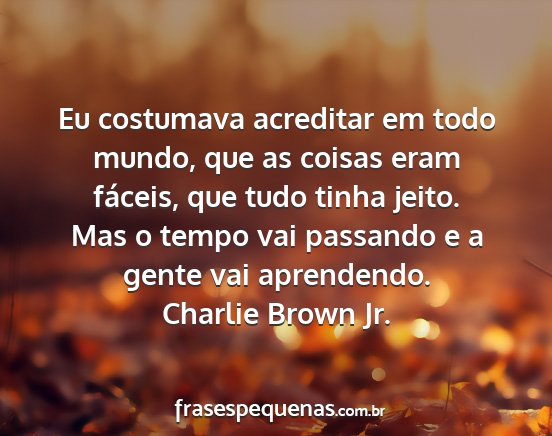 Eu costumava acreditar em todo mundo, que as coisas eram fáceis, que tudo tinha jeito. Mas o tempo vai passando e a gente vai aprendendo.Charlie Brown Jr.