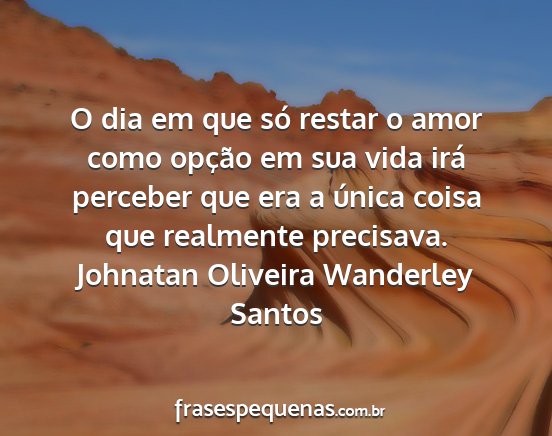 O dia em que só restar o amor como opção em sua vida irá perceber que era a única coisa que realmente precisava.Johnatan Oliveira Wanderley Santos