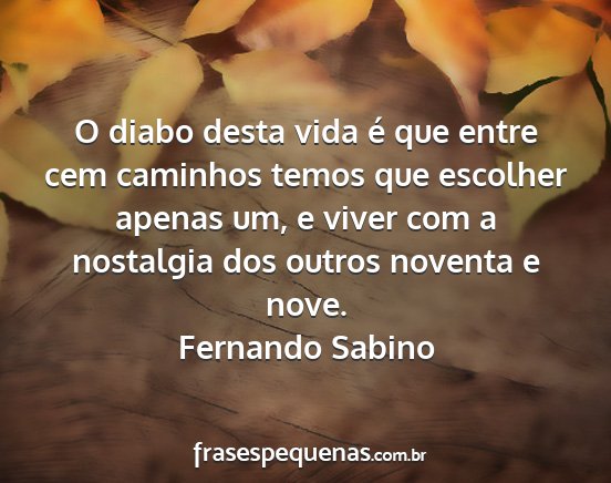 O diabo desta vida é que entre cem caminhos temos que escolher apenas um, e viver com a nostalgia dos outros noventa e nove.Fernando Sabino
