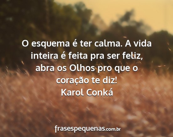 O esquema é ter calma. A vida inteira é feita pra ser feliz, abra os Olhos pro que o coração te diz!Karol Conká