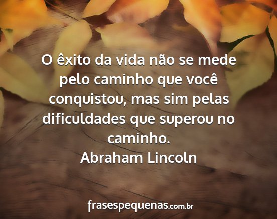 O êxito da vida não se mede pelo caminho que você conquistou, mas sim pelas dificuldades que superou no caminho.Abraham Lincoln
