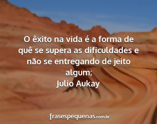 O êxito na vida é a forma de quê se supera as dificuldades e não se entregando de jeito algum;Julio Aukay