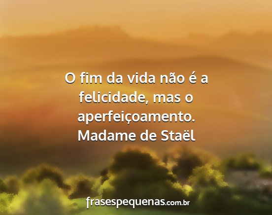 O fim da vida não é a felicidade, mas o aperfeiçoamento.