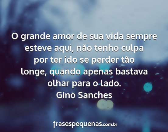 O grande amor de sua vida sempre esteve aqui, não tenho culpa por ter ido se perder tão longe, quando apenas bastava olhar para o lado.Gino Sanches