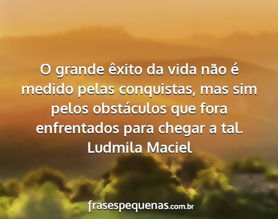 O grande êxito da vida não é medido pelas conquistas, mas sim pelos obstáculos que fora enfrentados para chegar a tal.Ludmila Maciel