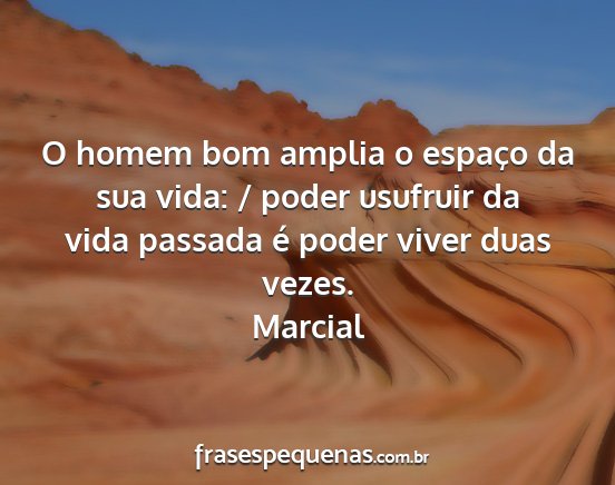 O homem bom amplia o espaço da sua vida: / poder usufruir da vida passada é poder viver duas vezes.Marcial