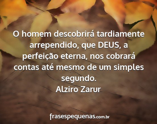 O homem descobrirá tardiamente arrependido, que DEUS, a perfeição eterna, nos cobrará contas até mesmo de um simples segundo.Alziro Zarur