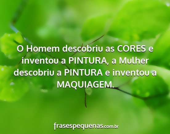 O Homem descobriu as CORES e inventou a PINTURA, a Mulher descobriu a PINTURA e inventou a MAQUIAGEM.
