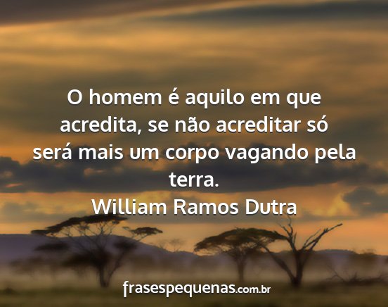 O homem é aquilo em que acredita, se não acreditar só será mais um corpo vagando pela terra.William Ramos Dutra
