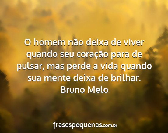 O homem não deixa de viver quando seu coração para de pulsar, mas perde a vida quando sua mente deixa de brilhar.Bruno Melo