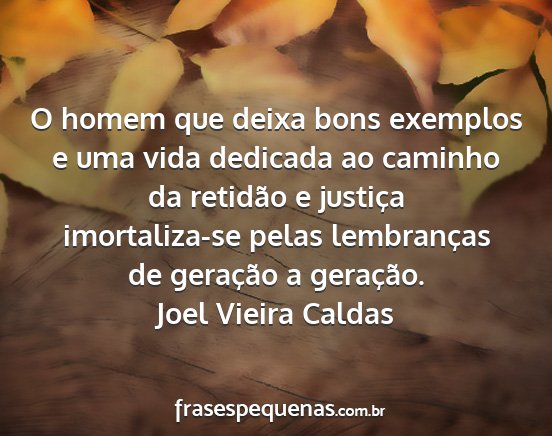 O homem que deixa bons exemplos e uma vida dedicada ao caminho da retidão e justiça imortaliza-se pelas lembranças de geração a geração.Joel Vieira Caldas