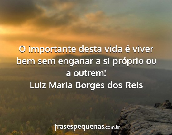 O importante desta vida é viver bem sem enganar a si próprio ou a outrem!