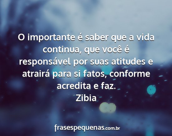 O importante é saber que a vida continua, que você é responsável por suas atitudes e atrairá para si fatos, conforme acredita e faz.Zibia
