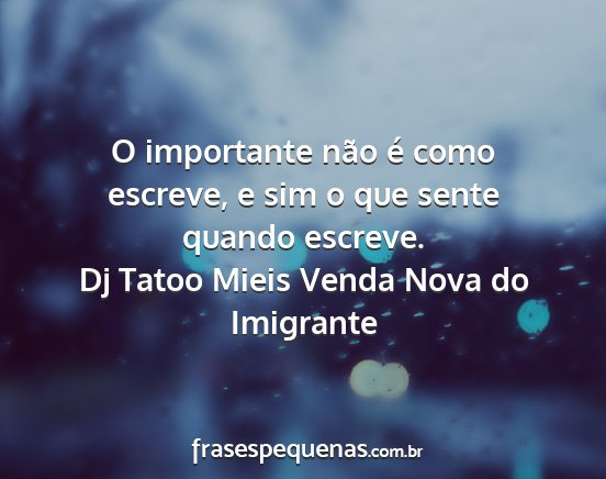 O importante não é como escreve, e sim o que sente quando escreve.Dj Tatoo Mieis Venda Nova do Imigrante