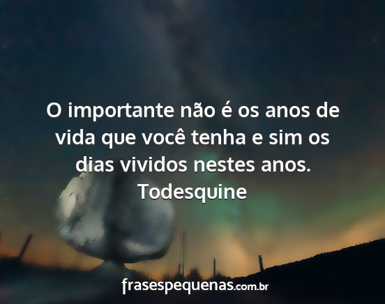 O importante não é os anos de vida que você tenha e sim os dias vividos nestes anos.