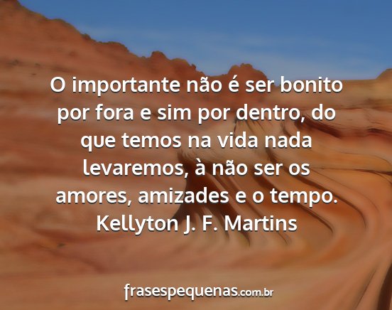 O importante não é ser bonito por fora e sim por dentro, do que temos na vida nada levaremos, à não ser os amores, amizades e o tempo.Kellyton J. F. Martins