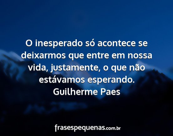 O inesperado só acontece se deixarmos que entre em nossa vida, justamente, o que não estávamos esperando.Guilherme Paes