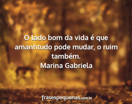 O lado bom da vida é que amanhtudo pode mudar, o ruim também.