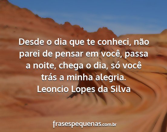 Desde o dia que te conheci, não parei de pensar em você, passa a noite, chega o dia, só você trás a minha alegria.Leoncio Lopes da Silva