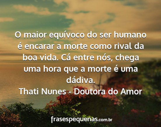 O maior equívoco do ser humano é encarar a morte como rival da boa vida. Cá entre nós, chega uma hora que a morte é uma dádiva.Thati Nunes - Doutora do Amor